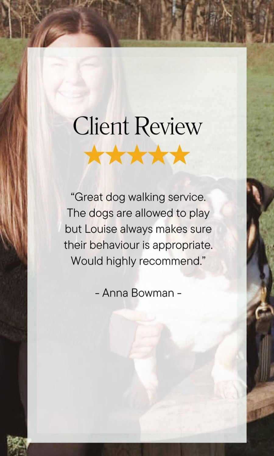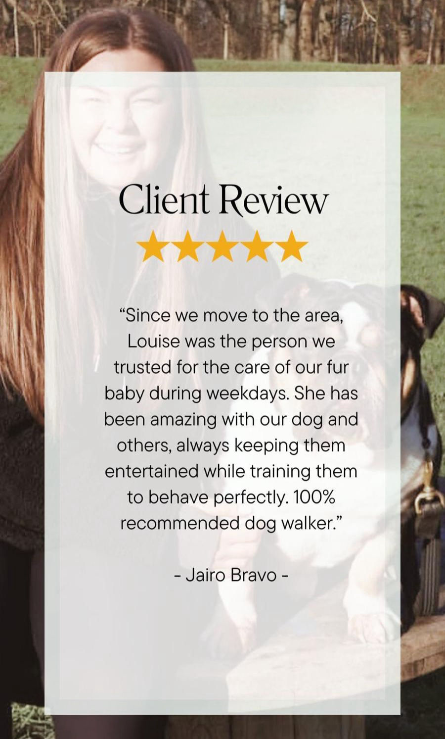 I offer pack or solo Dog Walking in varied countryside locations. Walking no more than 4 dogs per walk, you can rest assured your dog will be well exercised in a controlled, fulfilling safe environment.
