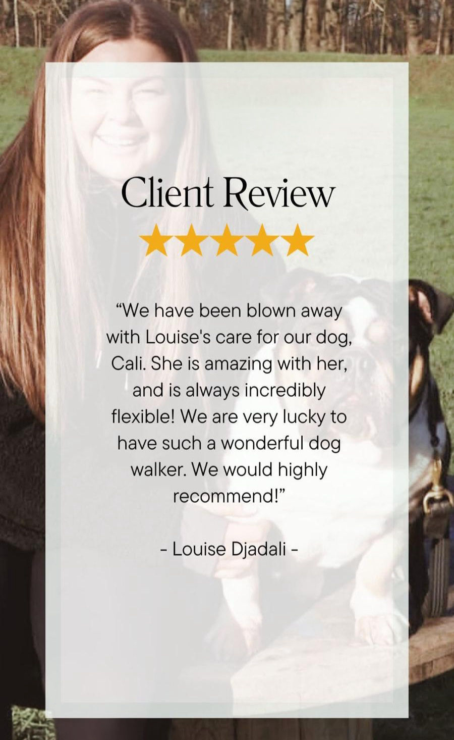 I offer pack or solo Dog Walking in varied countryside locations. Walking no more than 4 dogs per walk, you can rest assured your dog will be well exercised in a controlled, fulfilling safe environment.